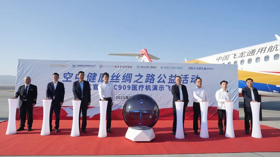 9月5号21点37分,从上海起飞的“五官健康C909医疗机”平稳降落在新疆石河子花园机场,进行了为期三天的“空中健康丝绸之路”首航之旅。这既是“空中健康丝绸之路”在边疆的始发站,更是为未来一带一路等国际合作场景提供了易复制、可推广的成功样本。