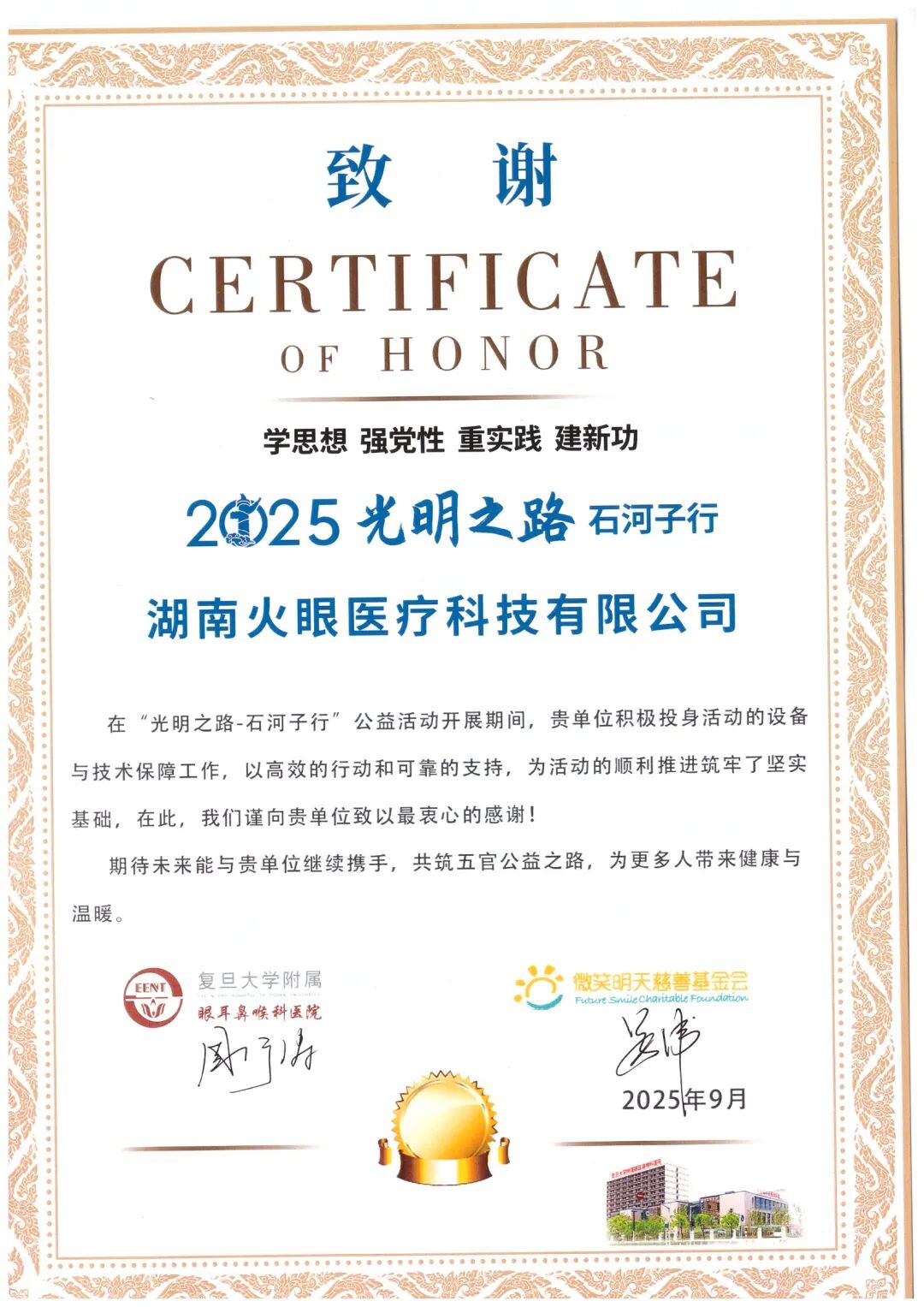 在践行社会责任的道路上,火眼从未停歇,不仅本次为五官健康C909医疗机捐赠先进眼科医疗设备,多年来更是持续投身公益事业,从社区眼健康筛查到校园近视防控科普,始终致力于让优质眼科医疗资源触达更多孩子。用科技力量为孩子的视力健康筑起第一道防线,赢得了家长与行业同仁的高度认可。